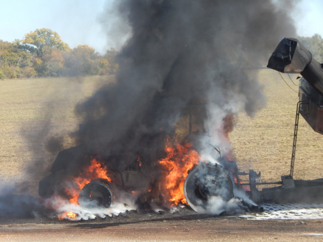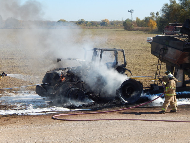 The tractor and the implement it was pulling are a total loss.