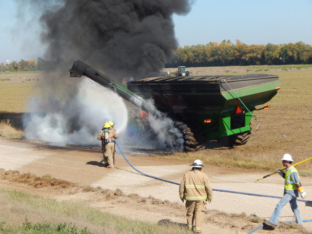 Saline County Sheriff Deputy Chad Flesher tells KSAL News that a crew working in a field was just coming back from lunch. They were preparing to unload grain into a semi trailer.