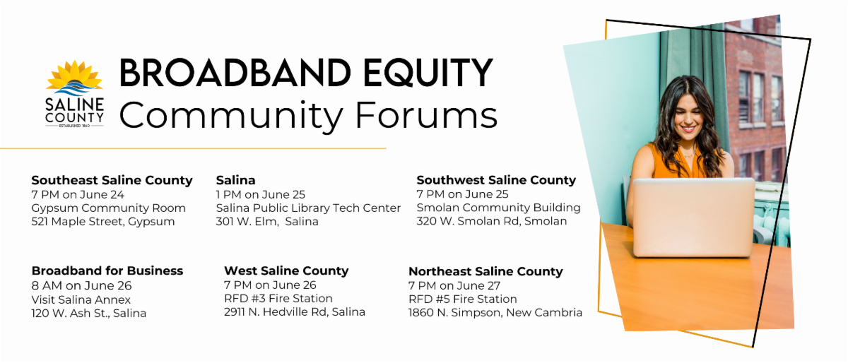 Saline County invites residents and business owners to participate in one of six Broadband Equity Community Forums this week.
