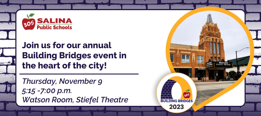 Salina USD 305 is planning another “Building Bridges” event. It will take place on November 9, 5:15-7:00 p.m. at the Stiefel Theatre.