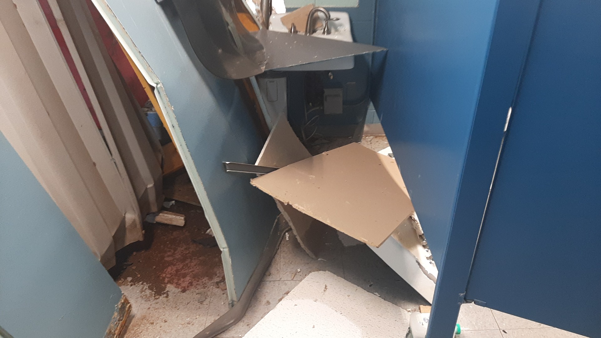 The crash impacted the plumbing in a restroom and caused some flooding as well.