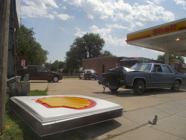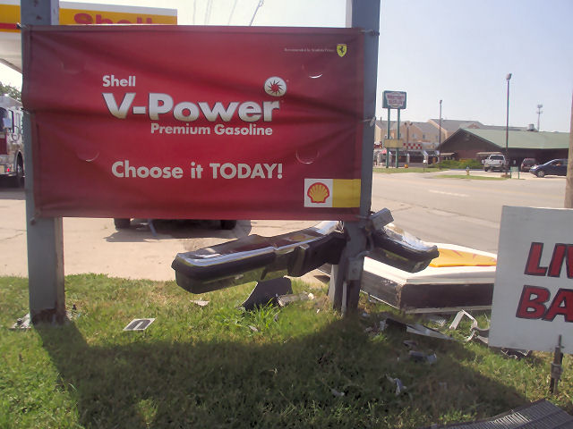 The crash happened at around 3:30, when a driver lost control of his car in a convenience store parking lot. The car crashed into the sign at Rod’s Shell convenience store at 1717 West Crawford.