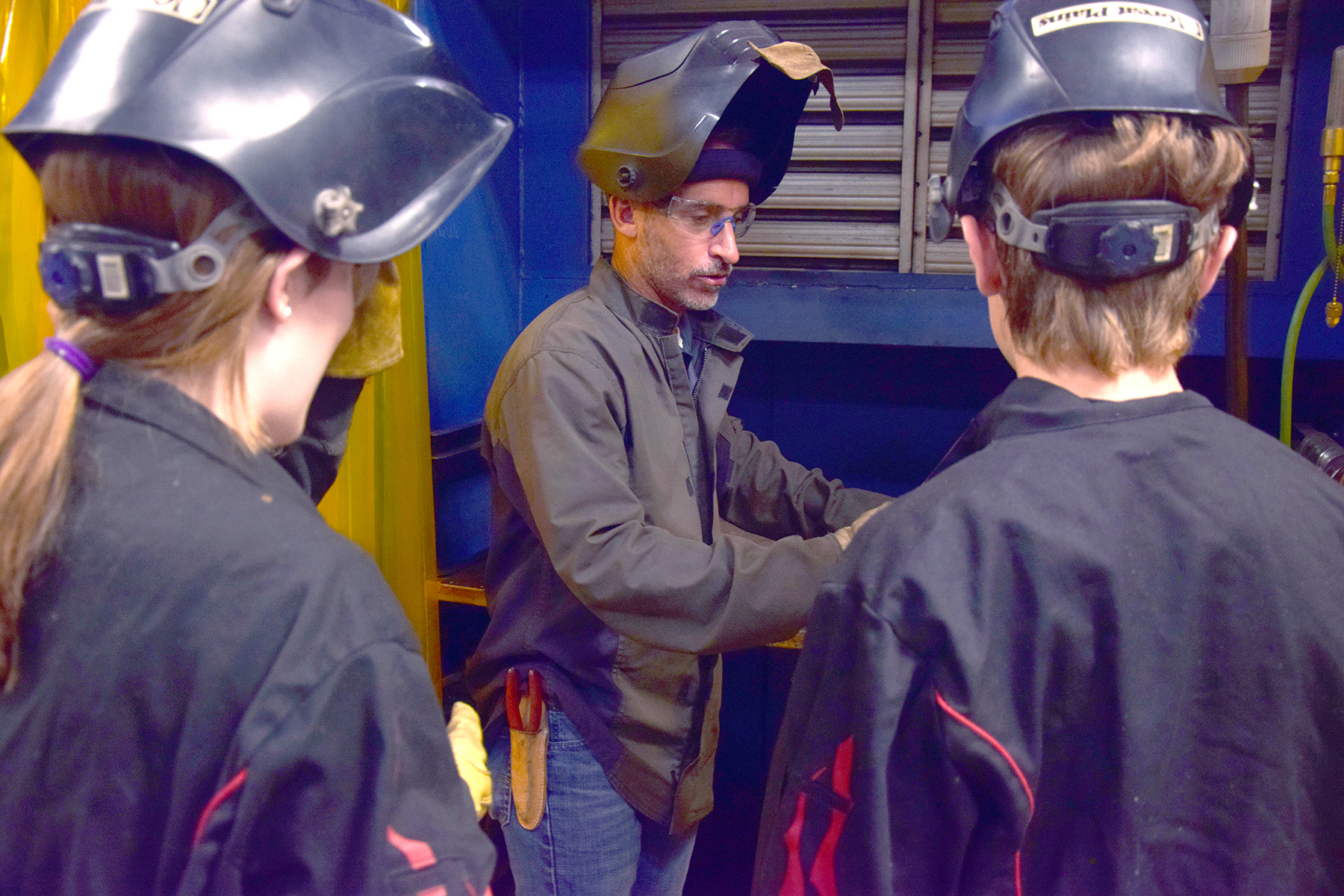 So last week, museum Executive Director Michelle Peck and Director of Education Matthew Tyler Delano Miller-Wells brought several high school students who work at the museum part-time to Salina Tech’s welding shop for some hands-on experience.