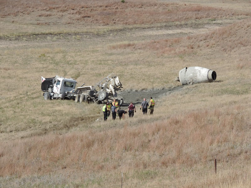 According to the Kansas Highway Patrol, a 2005 Mack Cement Truck driven by 28-year-old Mason David Roach of Great Bend was headed north on US Highway 281 in Russell County. The truck drove off the left side of the road into the a ditch.