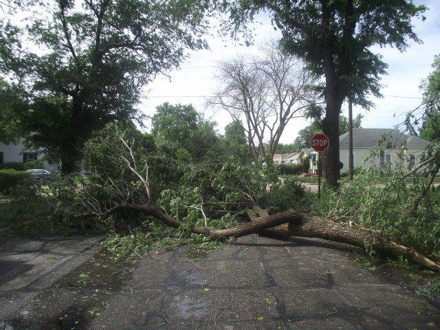 In McPherson County, 64 MPH wind was reported. In Marquette power lines were down, and a tin shed was blown apart and wrapped around a power pole. There were reports of street flooding in McPherson and spotty power outages.