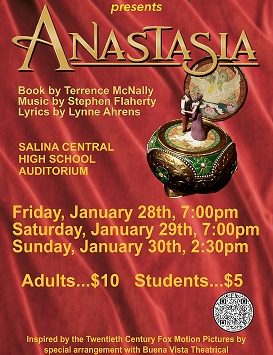 According to the school, the drama department will present the musical Anastasia on January 28th, 29th & 30th.