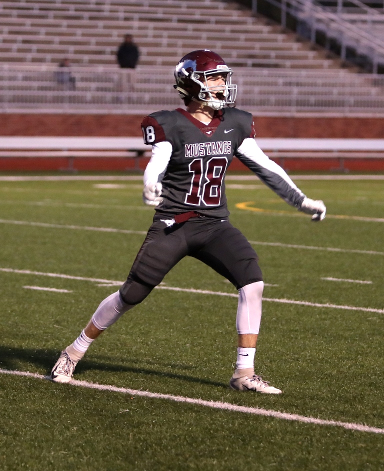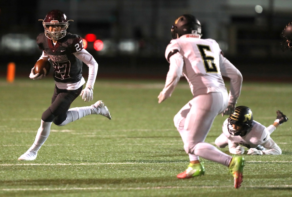 Chard ran behind a strong offensive line for 168 yards and four touchdowns, classmate Jackson Kavanagh racked up 323 yards of total offense, and the Mustangs dominated the Newton Railers at Salina Stadium Friday night, 47-14, earning their fourth consecutive victory.