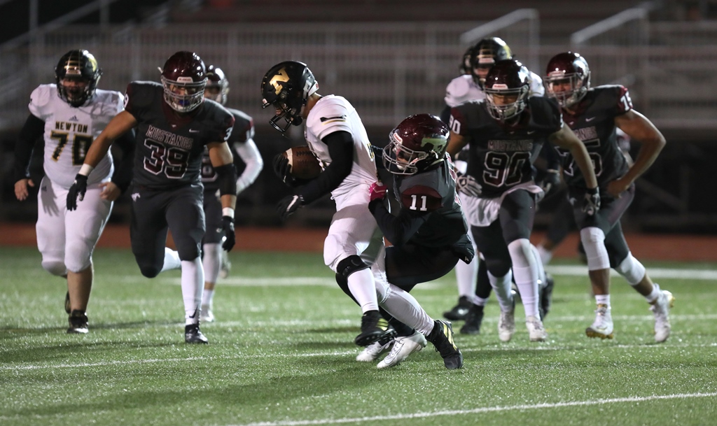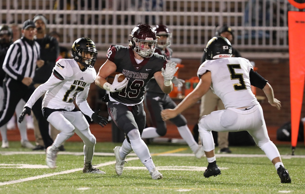 Much like a week ago, Salina Central (4-2, 4-1 AVCTL-I) faced little resistance on the opening drive. The Mustangs orchestrated a 14-play, 76-yard drive that ended with a three-yard TD run by Chard with 6:43 to go in the first. On its second offensive play, Newton (2-4, 2-3) fumbled the ball, recovered by Central junior Brooks Burgoon at the Newton 29. A few plays later, Chard blasted into the end zone from 13 yards out, doubling up the score to 14-0 with 4:50 to play in the opening stanza.