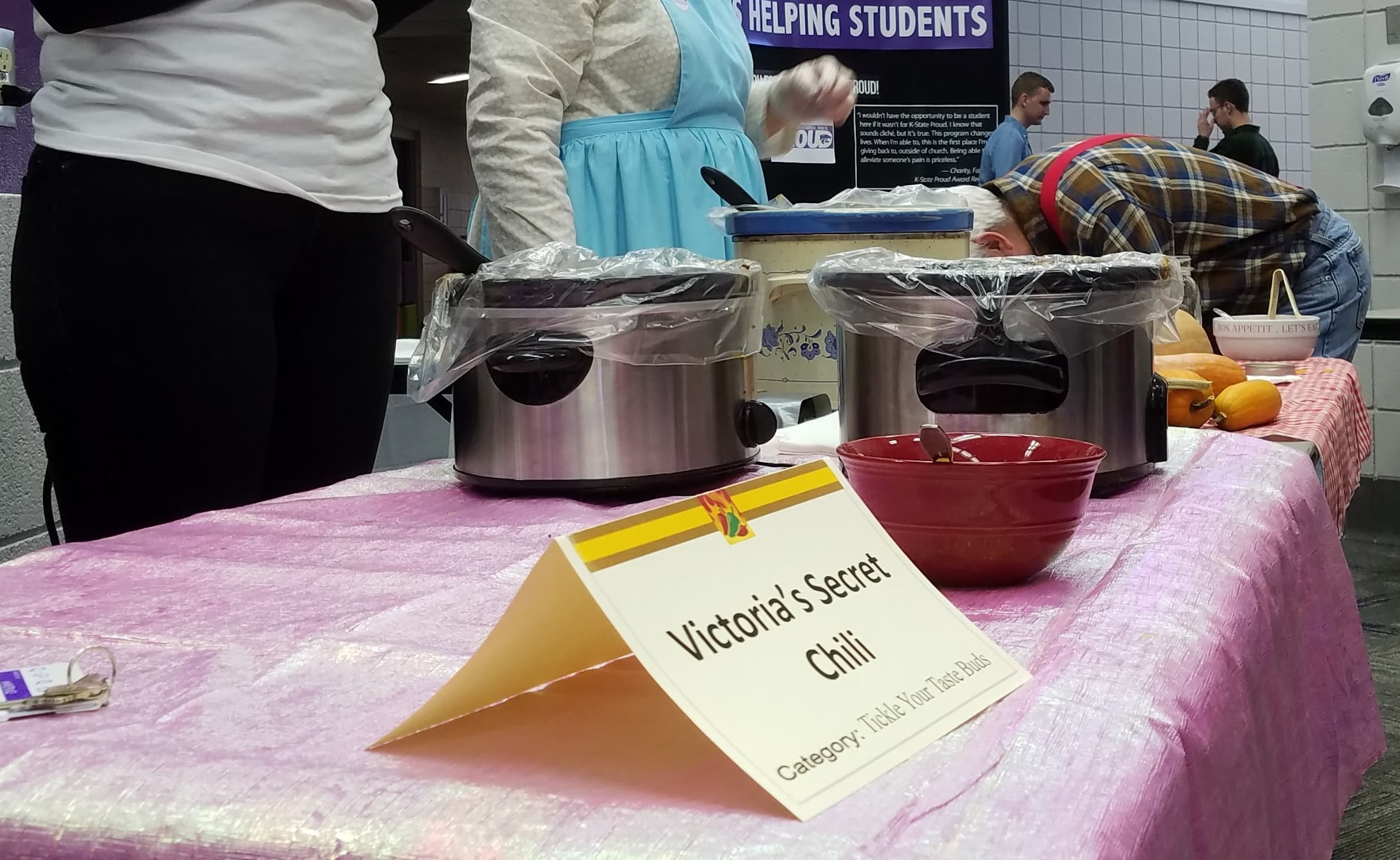 The concept is very simple. Those who enter the Chili Cookoff prepare a pot of chili that is either “Tickle Your Taste Buds” mild, “Warm N’ Fuzzy” medium, or “Melt Your Face Off” hot. Everyone on campus is then invited to sample the chili, and vote for their favorite. It was a fun, festival-type atmosphere in the chili sampling area with music accompanying laughter and smiles.