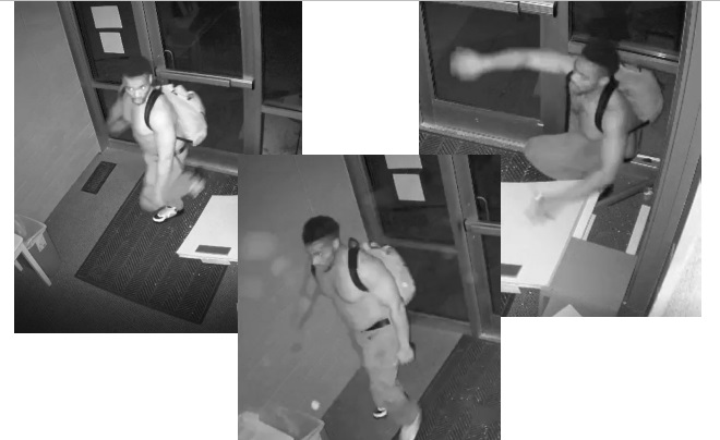 After reviewing surveillance video, the suspect gained entry into the business at approximately 3:29 AM. The suspect entered through the window and property was stolen from inside.