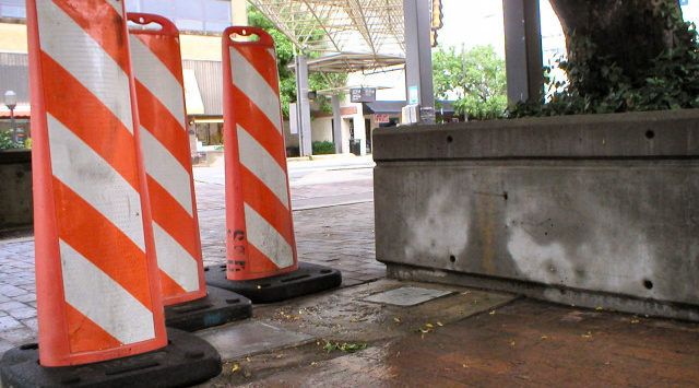 Salina Fire Marshal Roger Williams tells KSAL News that the wiring runs north and south, providing lighting to the lampposts on the east and west sides of the walks. Power has been shut off to the covered walkways and plazas as city electricians work to isolate any problems in the chain.