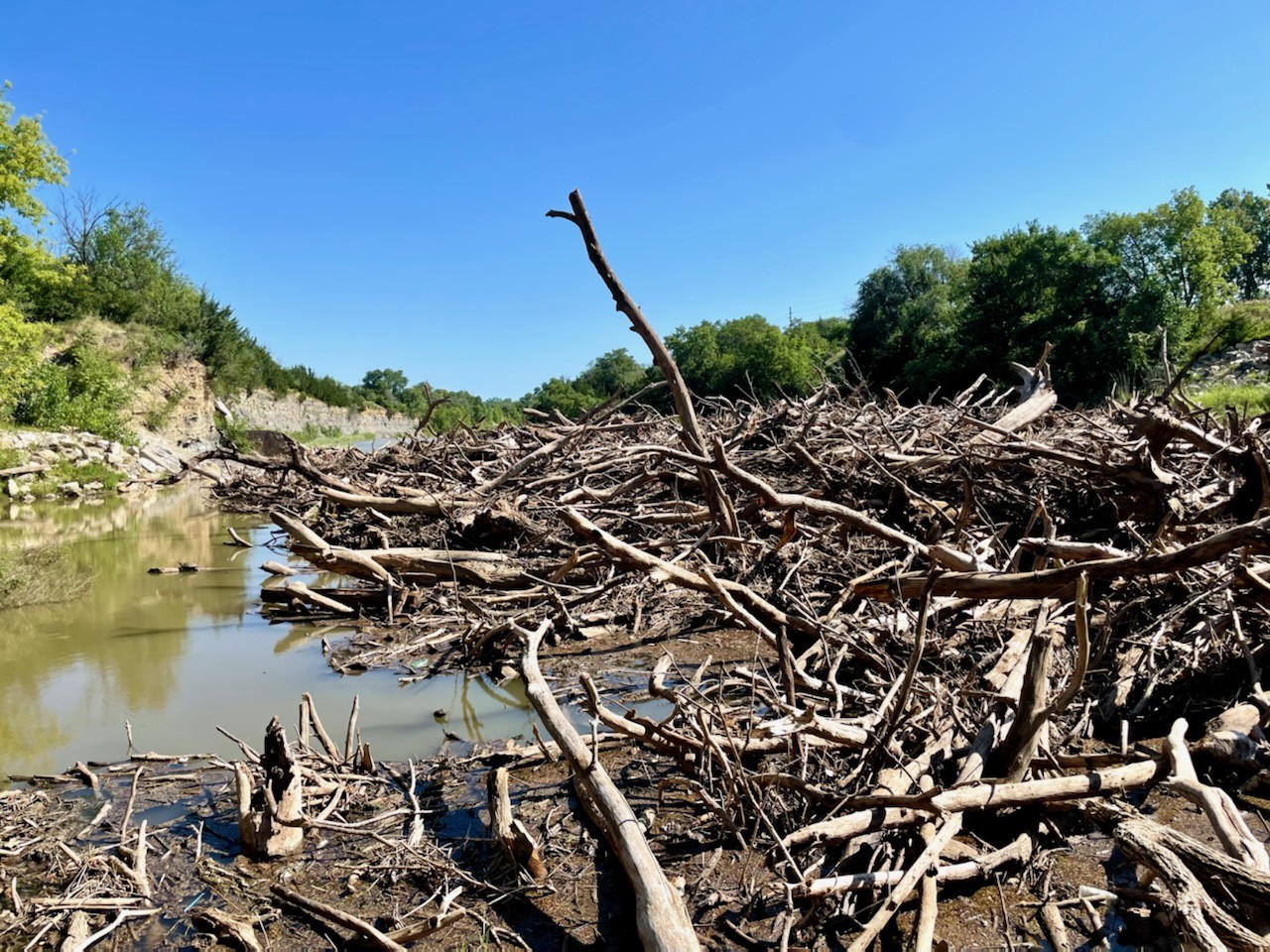 Much of the high water has receded along the banks of the Smoky Hill River, but the log jam near Bill Burke Park remains. The City of Salina has already taken a few bids to remove the pile with some estimates edging north of $500,000.