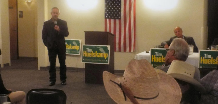 Facing a tough primary from a well-funded challenger, Kansas Congressman Tim Huelskamp hosted a whirlwind series of town hall campaign meetings across Kansas on Monday.