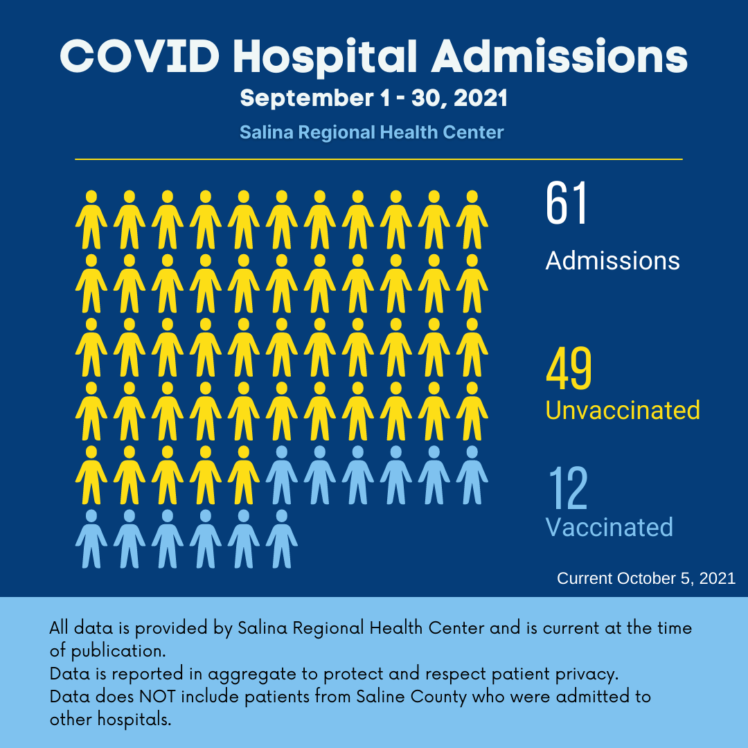 According to the Salina Regional Health Center, 61 people were admitted to the hospital for symptoms related to COVID-19. Of these, 49 patients were unvaccinated and 12 were vaccinated.