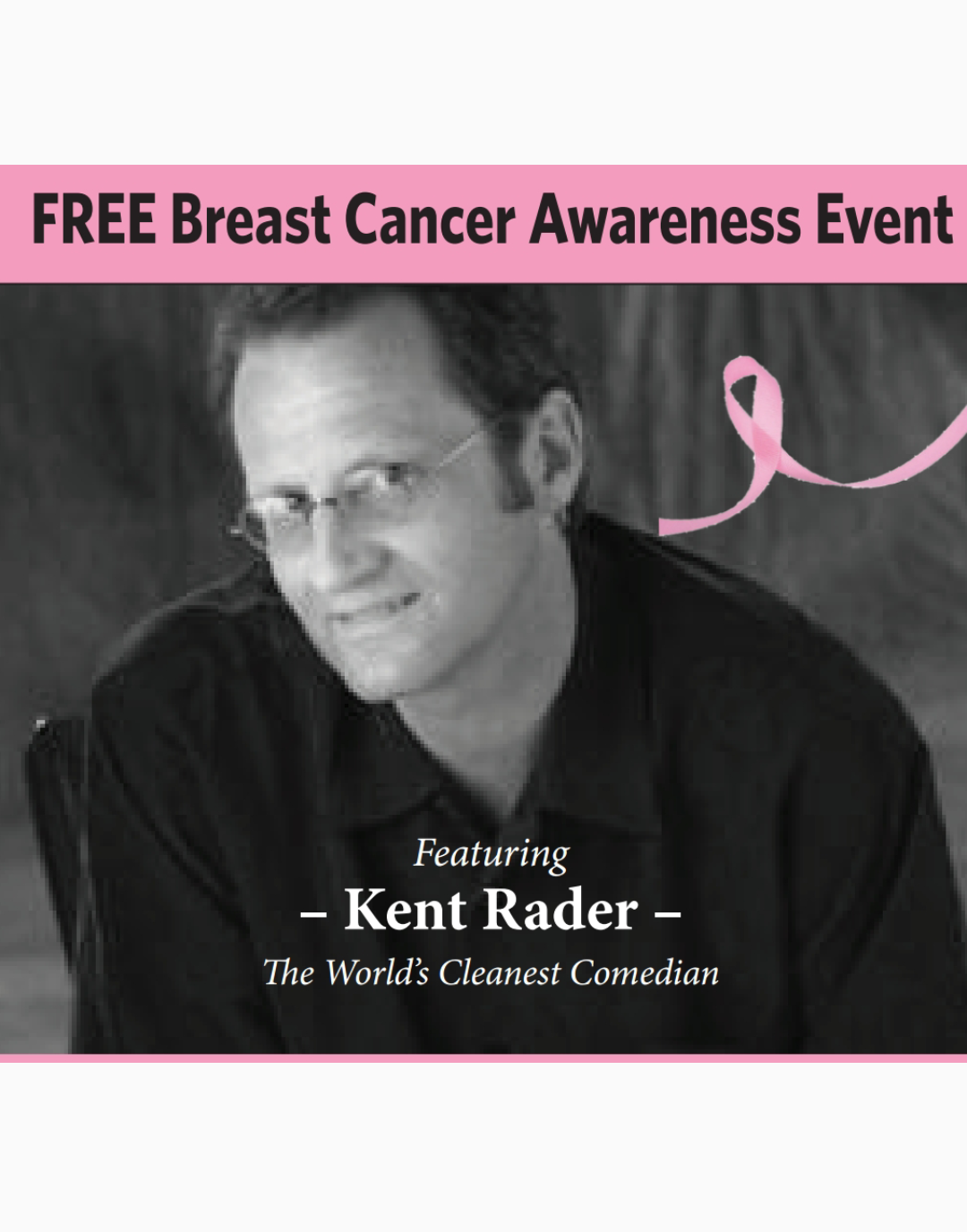Kent Rader, a comedian who believes passionately that laughter is important to reducing stress, will be the featured speaker at the Tammy Walker Cancer Center Breast Cancer Awareness Event 5:30 p.m. to 8 p.m., Tuesday, Oct. 24 at Salina Regional Health Center Conference Rooms 6 & 7, 400 S. Santa Fe Ave., Salina. Free hors d’oeuvres will be served beginning at 5:30 p.m. and representatives from a number of area agencies will be on hand with educational booths to offer information on breast cancer and healthy living.