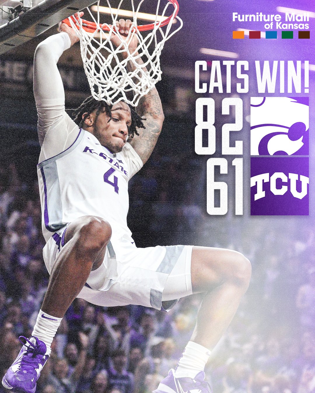 MANHATTAN, Kan. – Five Wildcats scored in double figures, including a game-high 18 points from senior Markquis Nowell, as No. 12/11 Kansas State snapped a 2-game losing streak with a near wire-to-wire 82-61 victory over No. 19/17 TCU on Tuesday night before a crowd of 8,667 at Bramlage Coliseum.