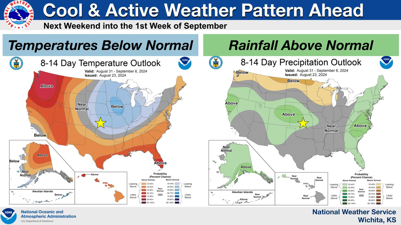 The longer-range (this weekend into the 1st week of September) forecast is shaping up for a taste of fall with below normal temperatures and above average rainfall.
