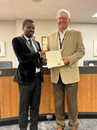 The proclamation, presented by Saline County Management Intern Farel Otieno, declares Nov. 7 to 13, 2022 as a time to salute and honor the service and sacrifice of our men and women transitioning from active military service. In observance of Operation Green Light, various Saline County buildings will be illuminated with green bulbs to shine a light on the needs of veterans.