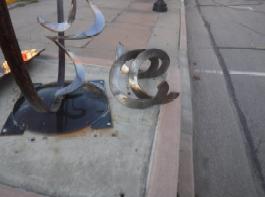 On May 11th, 2019, between 1:00 PM – 9:30 PM, an unknown person damaged a sculpture at the corner of Iron and 7th Street, across from the Smoky Hill Museum in Salina. The sculpture, named “Dave”, was on display for the Sculpture Tour in Salina.