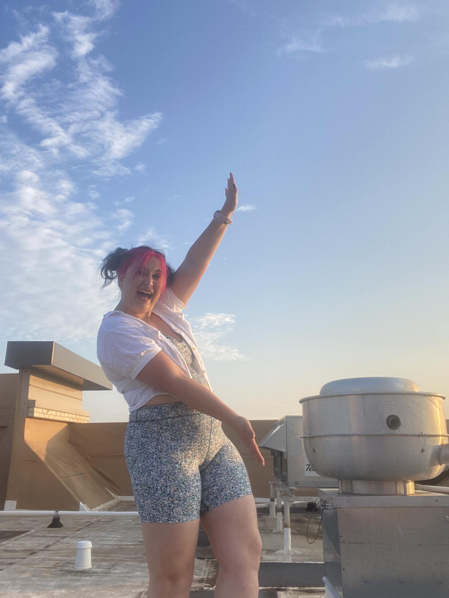 Hannah Holt with Salina Radio Station Y 93.7 was stationed on the roof of Chick-Fil-A when it opened at 6:30. She vowed not to come down until she raised $5,000.