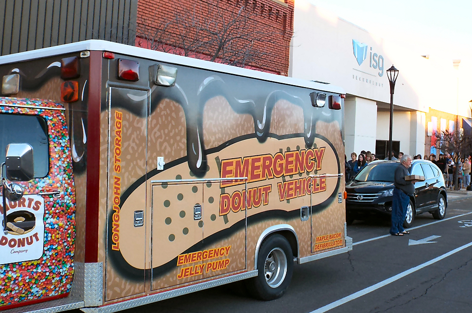 Witnesses identified to KSAL News the driver of the vehicle as an owner of a Salina donut shop. This same owner has previously showed up at locations in Salina where Hurts Donut was selling from, and voiced his displeasure that the Wichita donut shop was selling in Salina.