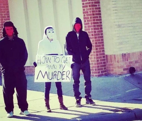 Dozens of protesters gathered outside the state Capitol in Topeka to voice their anger after a Missouri grand jury refused to indict a St. Louis-area police officer for shooting an unarmed 18-year-old.