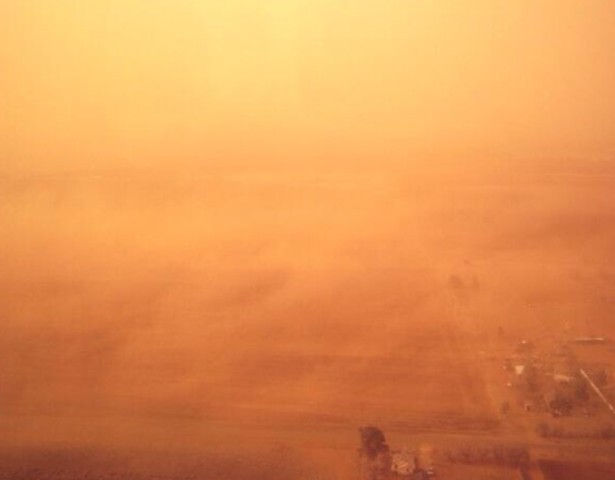 Meteorologist Jeff Hutton says much of the dirt this year has been blowing in from eastern Colorado, where it is drier. But a lot of it is also coming off Kansas fields.
