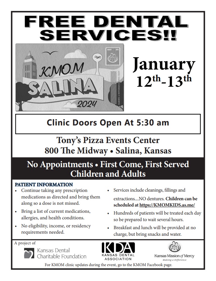 The Tony’s Pizza Events Center in Salina later this month will be turned into what will temporarily be one of the largest free dental clinics in the world. The Kansas Dental Charitable Foundation will host its annual “Kansas Mission of Mercy” free dental clinic on January 12th and January 13th.