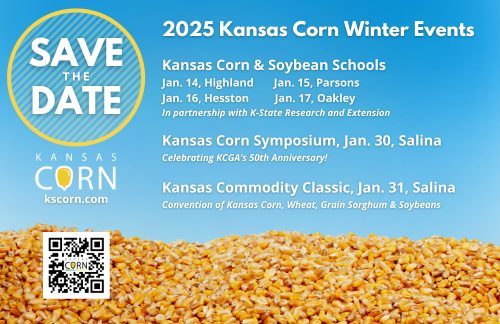 The Kansas Corn and Soybean Schools are January 14 through 17 across the state. The Kansas Corn Symposium will celebrate KCGA’s 50th year on Jan. 30th, and the Kansas Commodity Classic is Friday, Jan. 31, both at Salina.