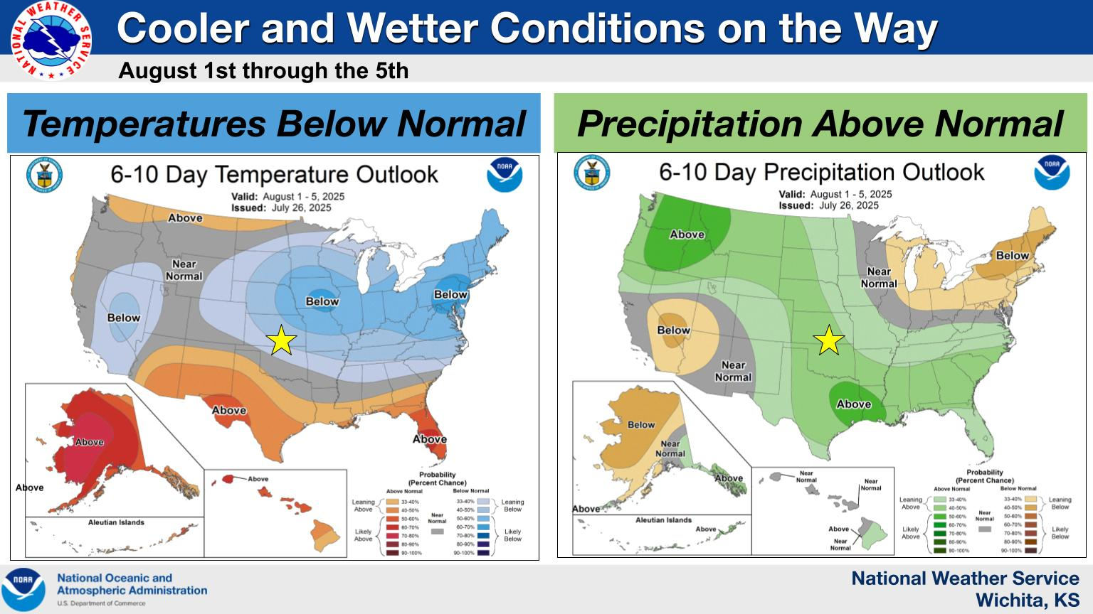 After a few more days of dangerous heat, to begin the week, cooler and wetter conditions are expected by the weekend. Many locations will see highs only in the 70s and 80s by Thusday and Friday.
