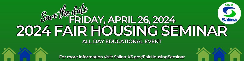 According to the City of Salina, in celebration of National Fair Housing Month, the Community Relations Division will hold its Annual Fair Housing Seminar on Friday, April 26th, from 8:00 a.m. to 4:30 p.m. at Tony’s Pizza Events Center, 800 The Midway.