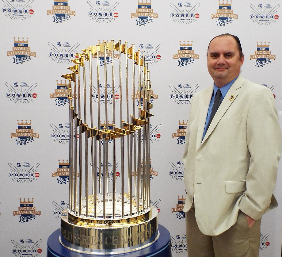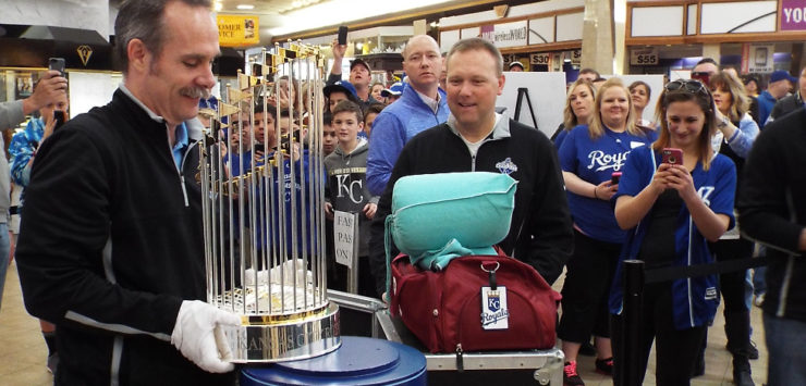 “I’ll keep it on my phone, maybe get it printed off …it’s definitely going on Facebook,” Kyle Burch of Salina said gazing down at a picture of him standing next to the gleaming trophy the Royals were handed after beating the New York Mets.