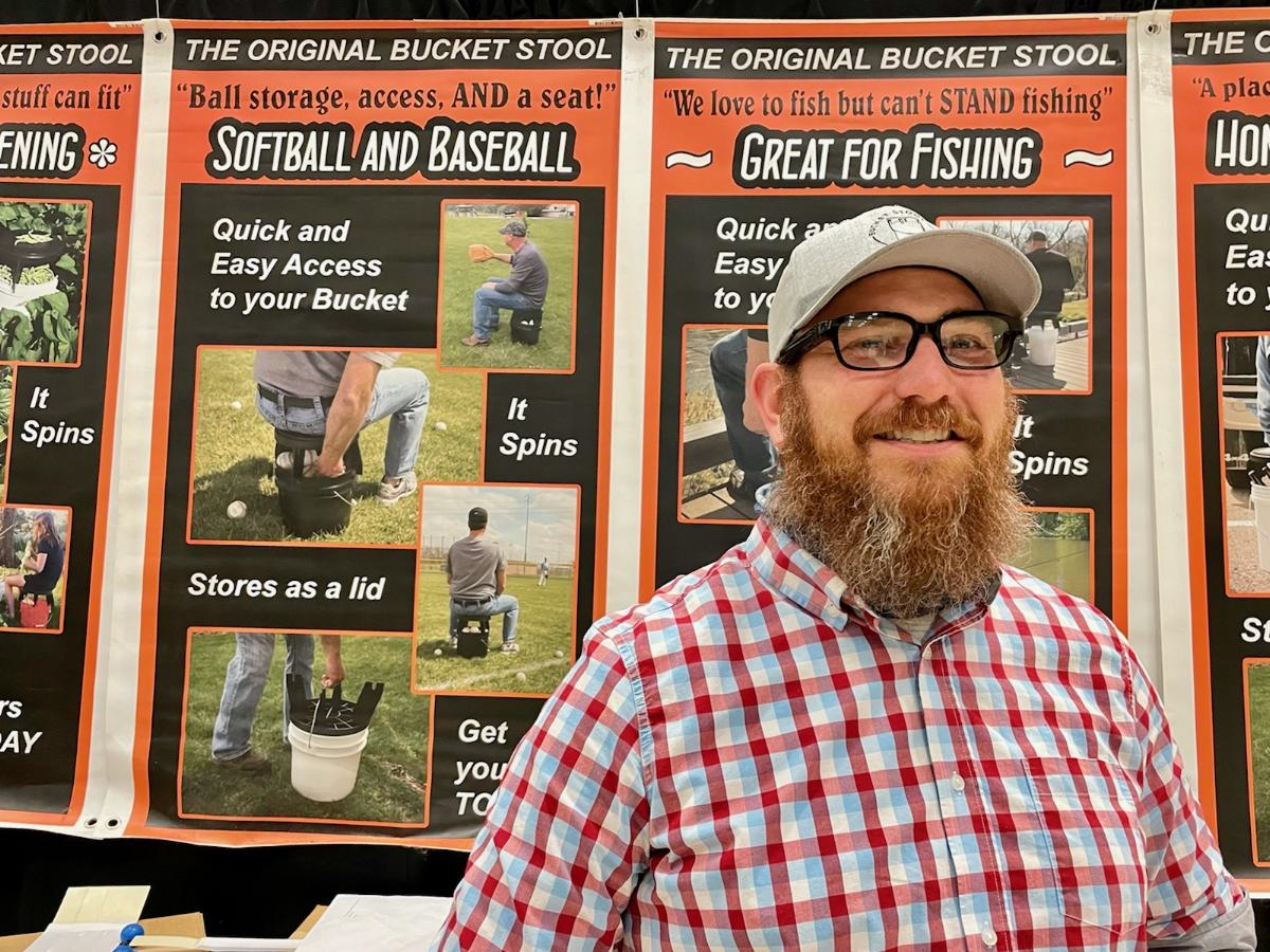 Shannon Campbell with Styria Bakery in Denver says it’s great to be back in Salina. “Good to see some familiar faces and the pace seems to be picking up.” Chad Titterington, inventor of the Original Bucket Stool was on hand to pitch his handy tool for work and play.