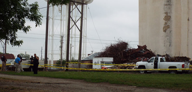 Crime scene investigators are processing the scene.[/caption]]]>