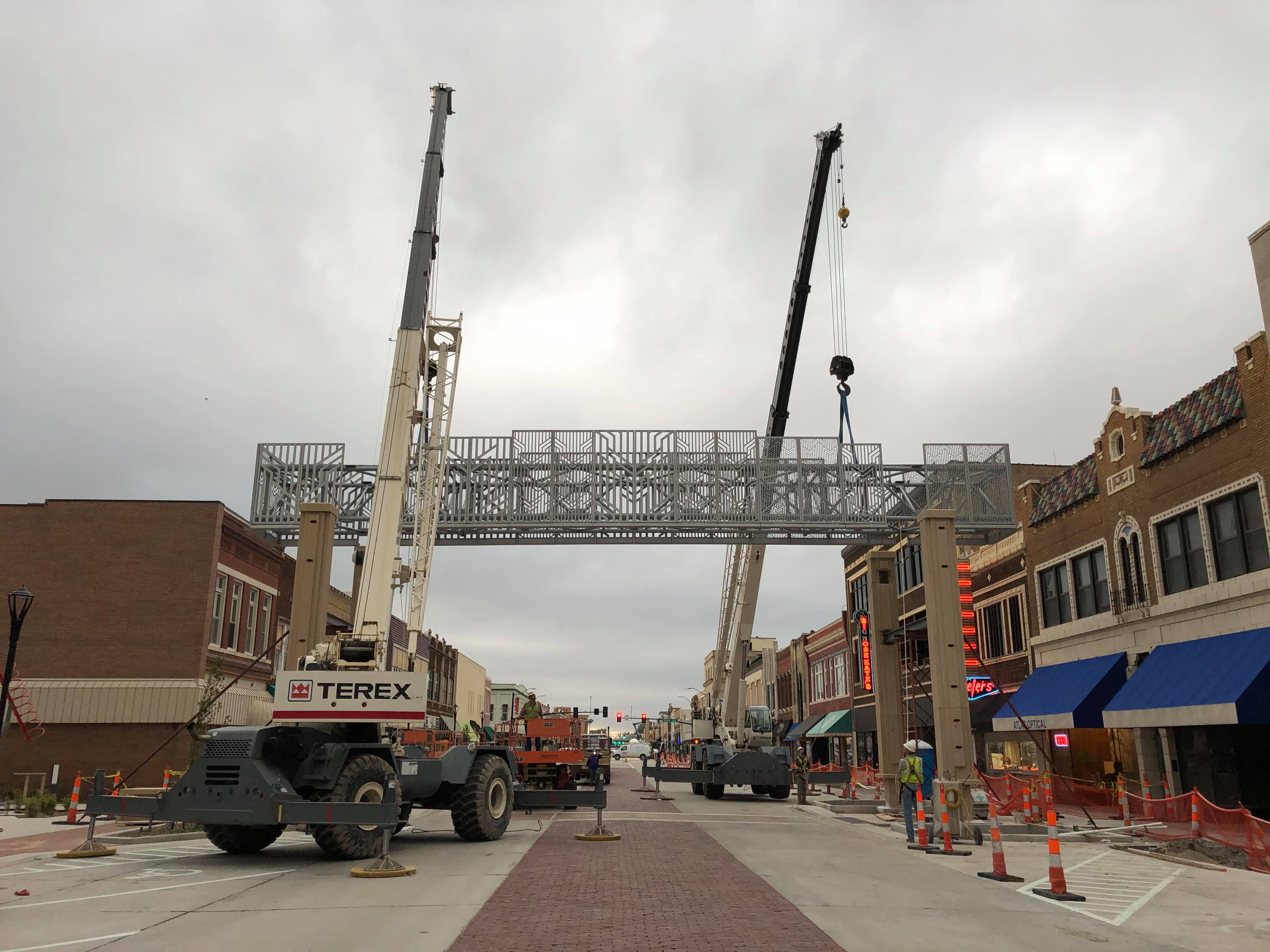 A portion of Santa Fe in Downtown Salina which re-opened a couple of weeks ago will temporarily closed today to allow for the fourth of four overhead structures to be put in place