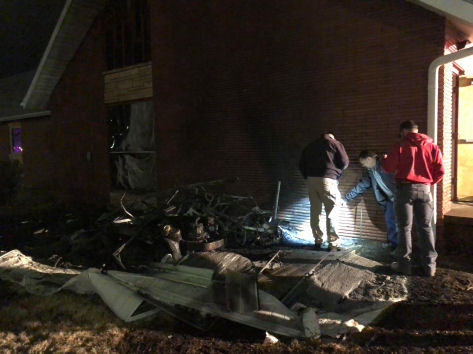 Salina Fire Department Battalion Chief David Turner told KSAL News at the scene there was an active fire, with flames visible, when the first crews arrived. A storage shed adjacent to, and directly behind the church was fully involved in fire.