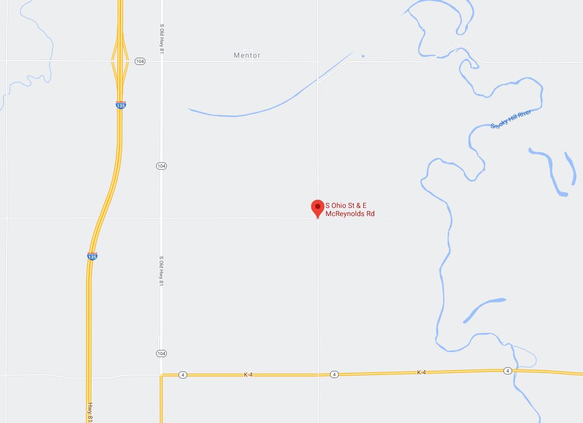- The fire burned just south of Mentor, Kan.
