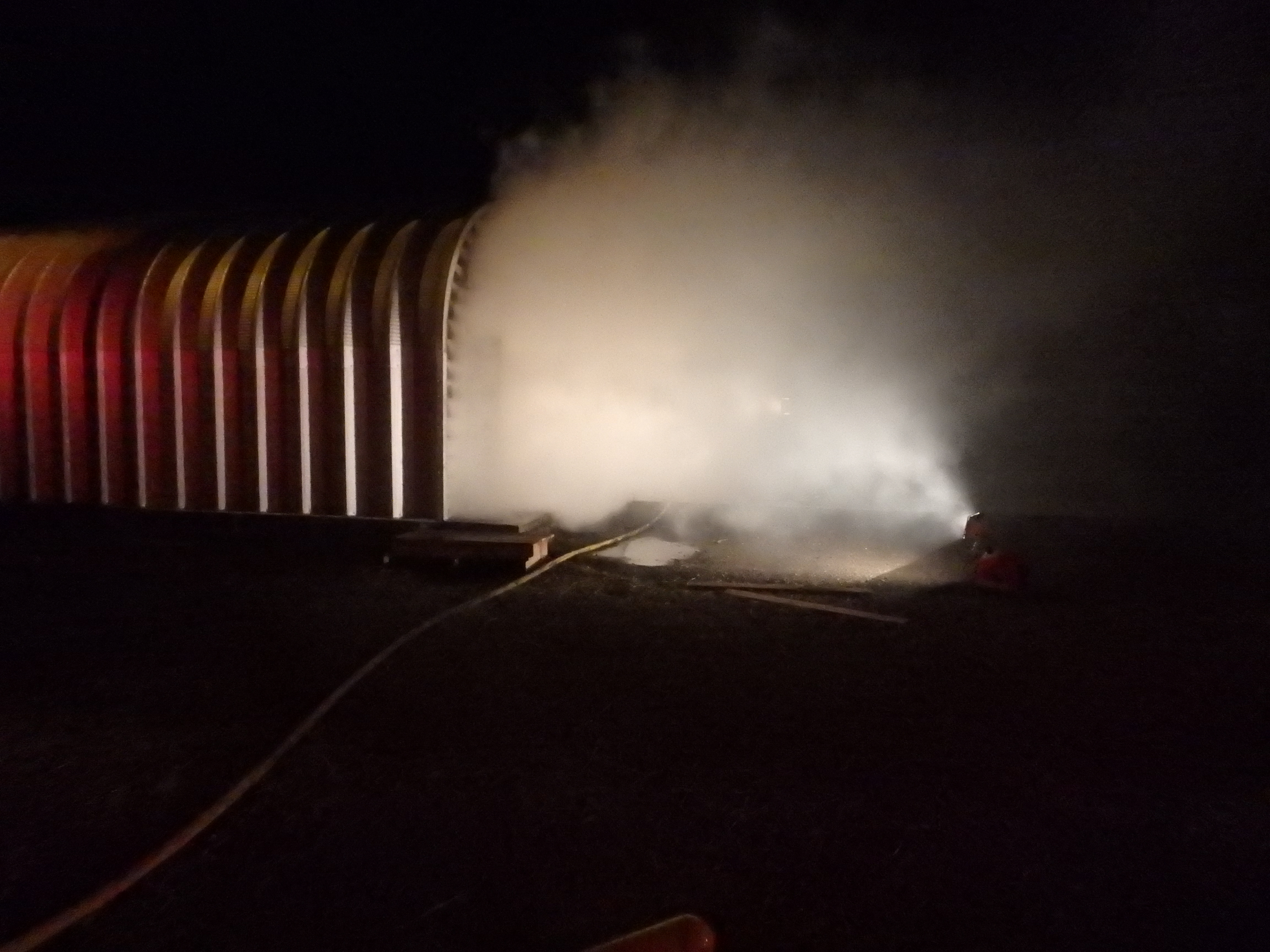 A knock on the door awakens a man to a fire that destroyed over $90,000 worth of vehicles and tools he had stored in a Quonset hut near Smolan.