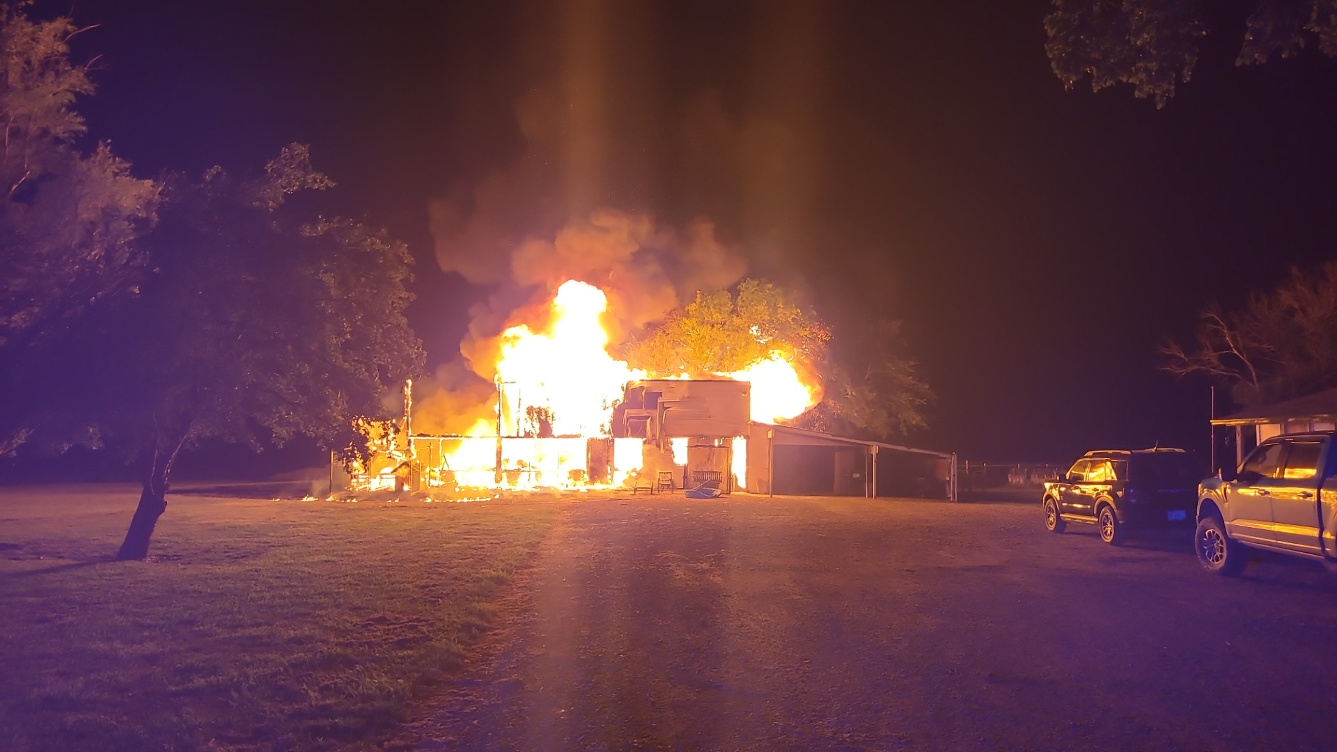 Investigators are still searching for how the fire started. A tractor, UTV, numerous tools, grills and personal items were all burned up. Loss is listed between $100,000 to $120,000.
