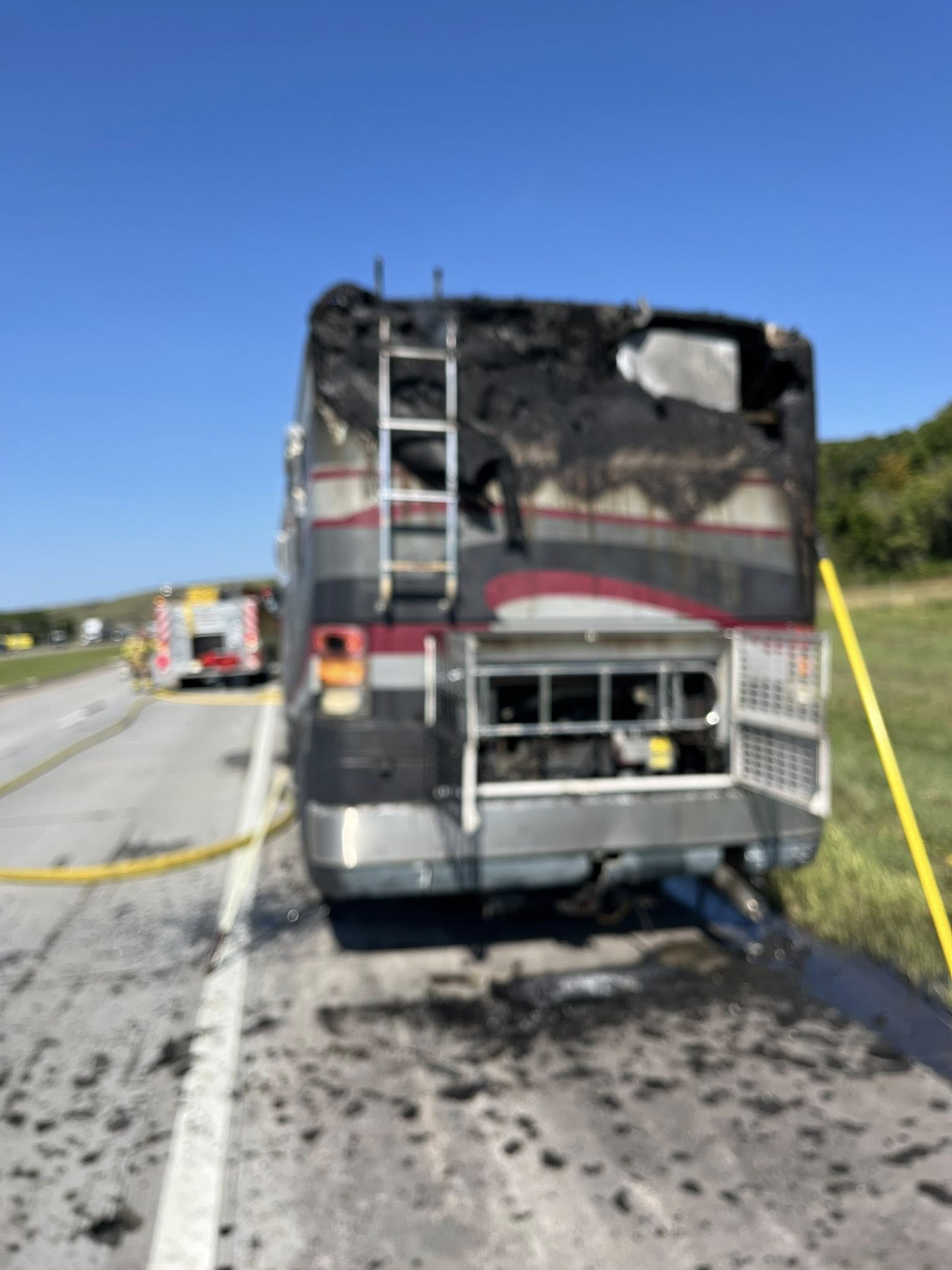 At around 4:00, first responders were called to the report of a vehicle fire on Interstate 70, in the vicinity of milepost 300, east of an area of several miles of road construction.