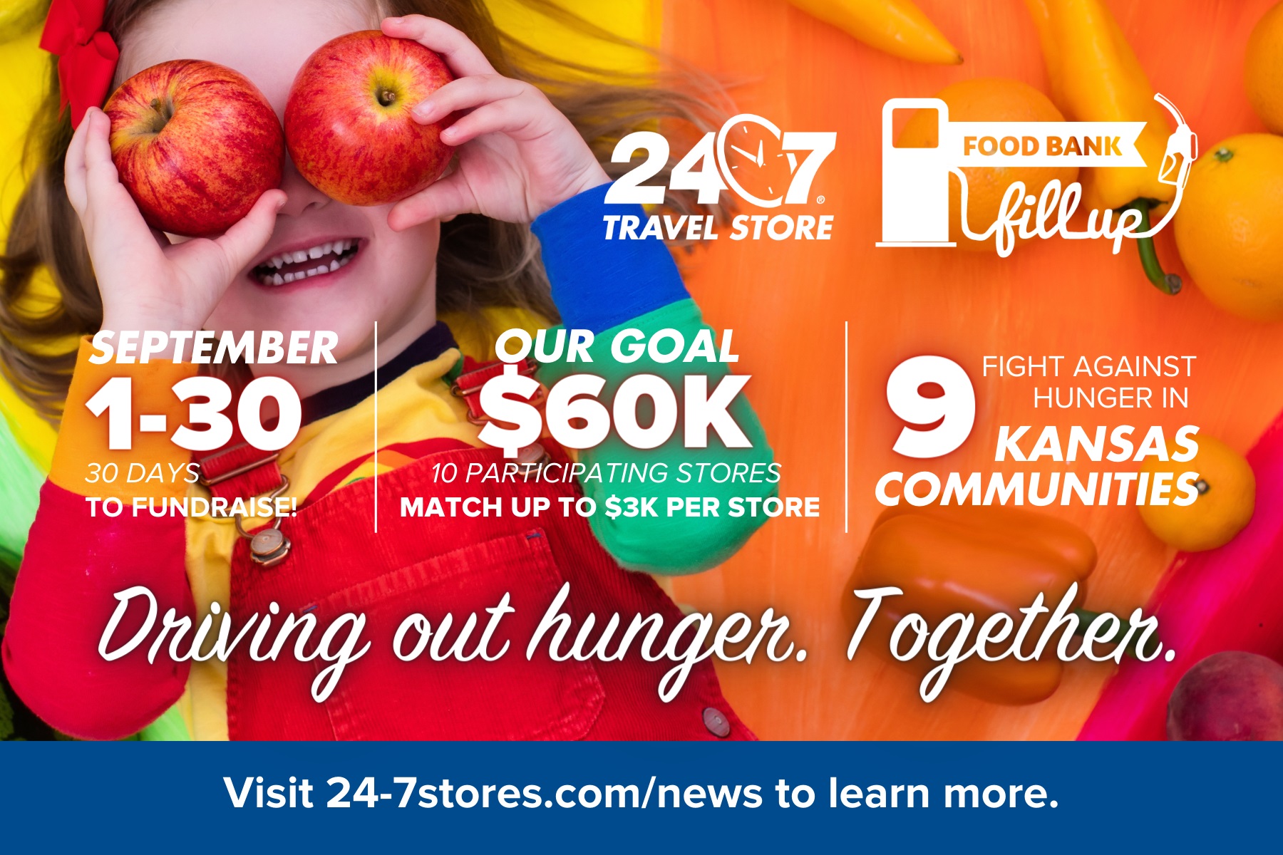 A Salina based convenience store chain is on a mission to help stock the shelves of local food banks. 24/7 Travel Store is kicking off its 7th annual Food Bank Fill-Up campaign, “Driving Out Hunger. Together.”