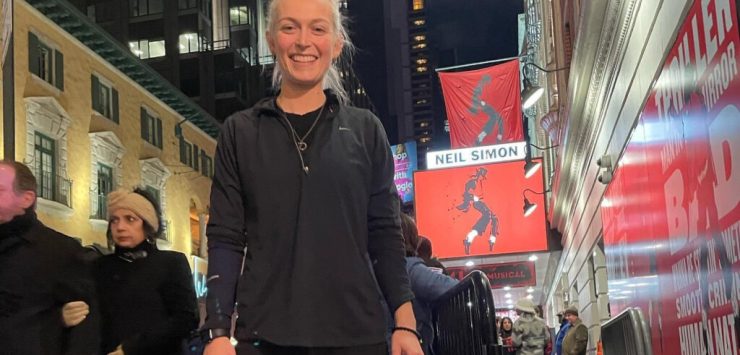 That number is significant because by definition, a theater in New York City with fewer than 500 seats is considered off-Broadway. Parker had fallen just one seat shy of that debut Nov. 30, when she subbed as the lead drum and percussion chair for Fiddler on the Roof in Yiddish at New World Stages in the heart of New York City’s Theater District. New World Stages seats 499 people.