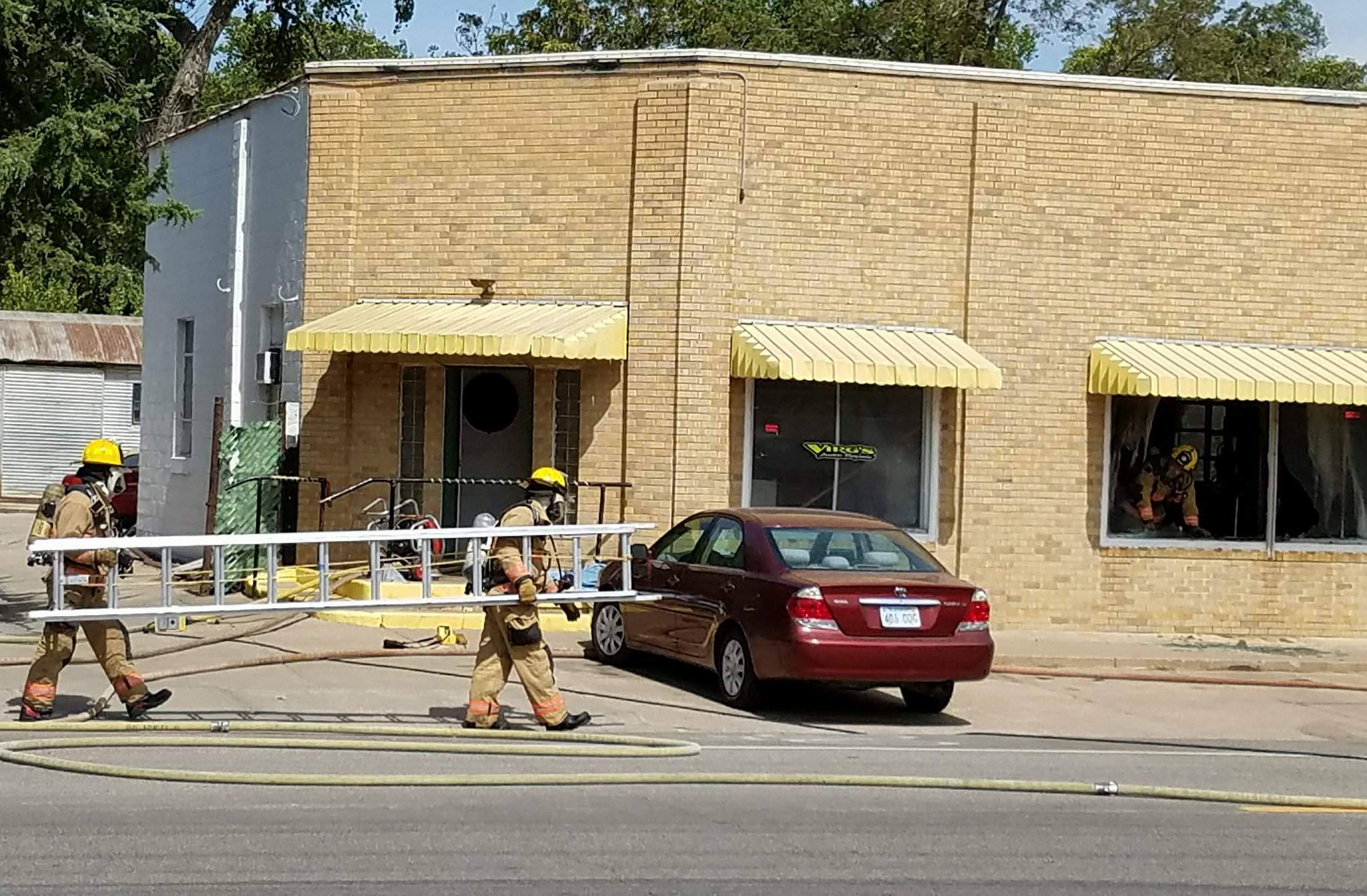 First responders were called to Virg’s Auto Repair at 501 E. Pacific just before 1:00 in the afternoon to the report of a fire. Salina Fire Marshal Troy Long told KSAL News at the scene that at 12:56 pm a passing motorist saw flames in a front window of the business and called for help.