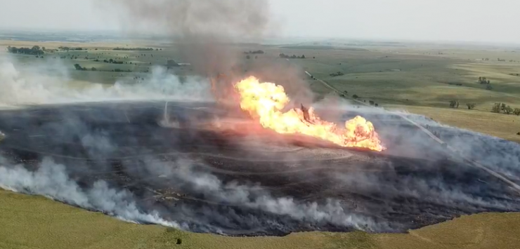 First responders were at the scene of an incident in rural Ellsworth County where a gas line has ruptured and ignited, creating a large plume of fire Thursday afternoon.