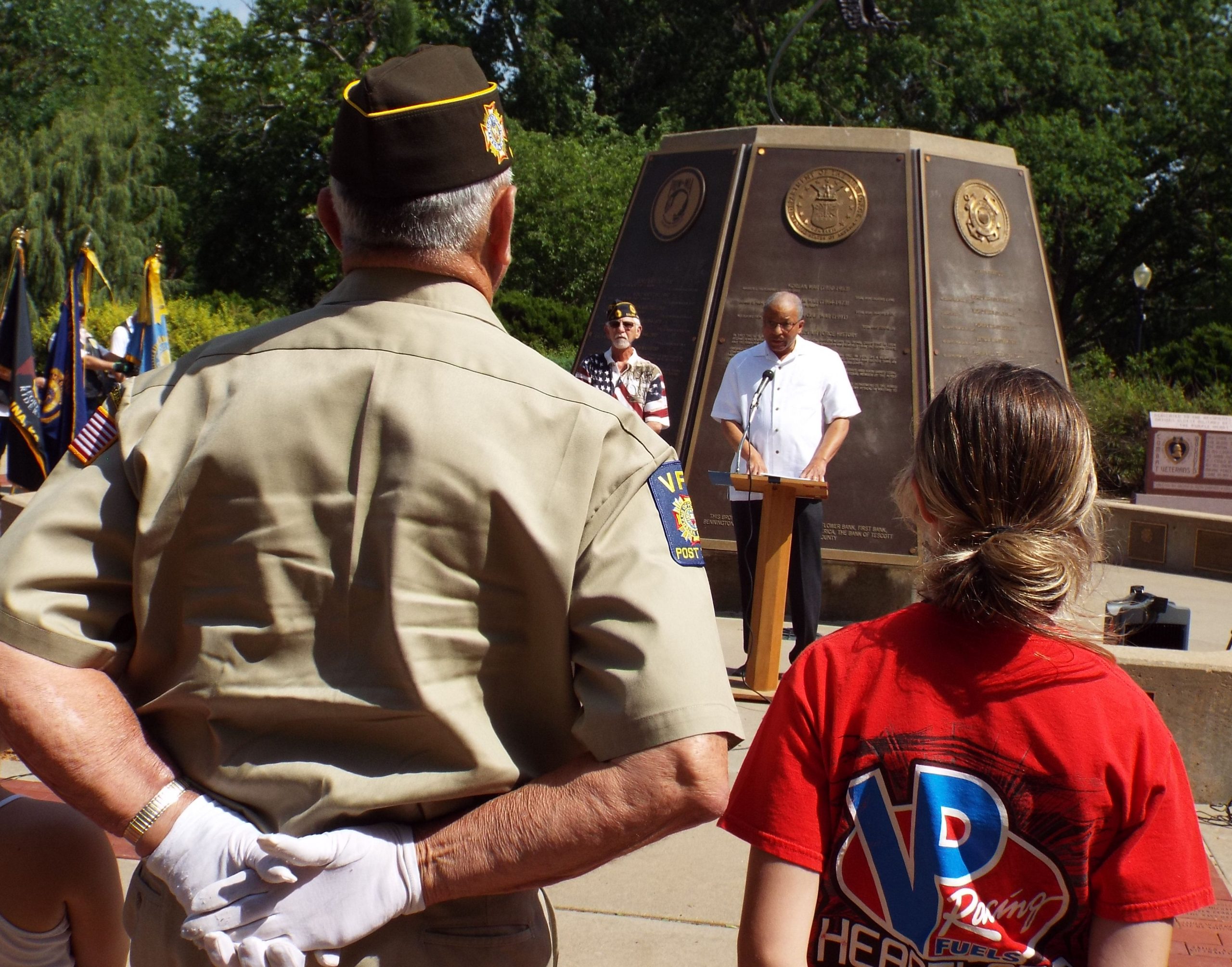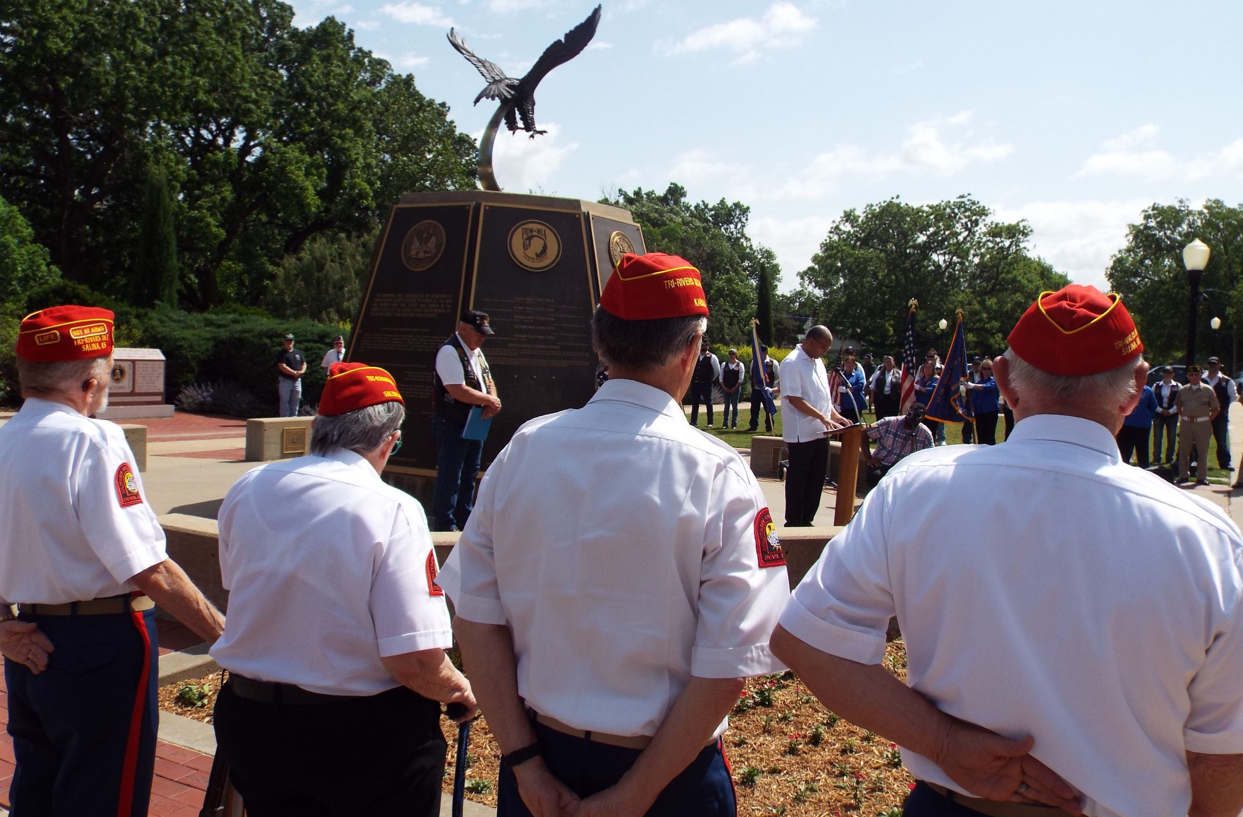 Following brief cemetery services at Gypsum Hill Cemetery and at Roselawn Cemetery, events culminated with a gathering at the Saline County War Memorial in Sunset Park.