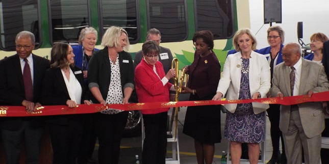Governor Laura Kelly, joined by Federal Transit Administration Administrator Nuria Fernandez and Kansas Transportation Secretary Julie Lorenz, appropriately arrived to the event at the OCCK Transportation Headquarters in downtown Salina via CityGo bus.