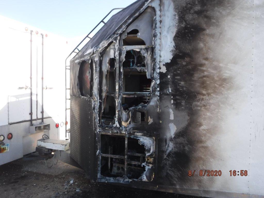 Authorities believe that the fire started with a generator that is built on the driver’s side front corner of the trailer. Either a battery shorted out or a cable was cut, but it started the fire, which then quickly spread.