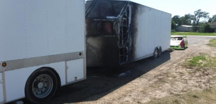 A homemade 1994 GM motorhome, pulling a homemade enclosed car trailer–with a car inside–was traveling to the speedway when the driver noticed smoke coming from the trailer. The owner, 57-year-old Brian Fry, Whitewater, Kan., attempted to put out the fire with a fire extinguisher, but was unable to do so. The fire then to spread to the motorhome.