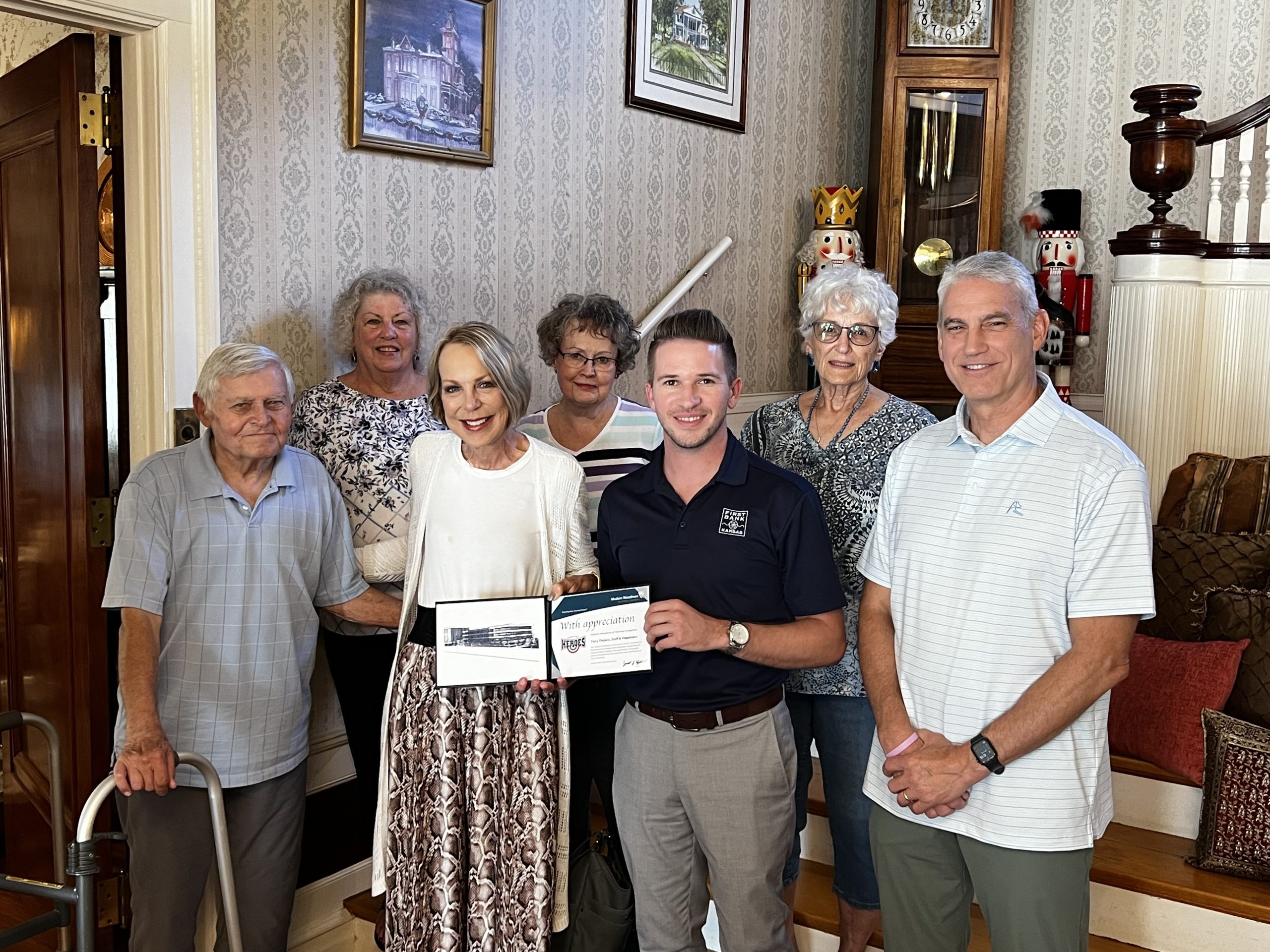 According to the Abilene Convention and Visitors Bureau, on Tuesday evening friends of the Historic Seelye Mansion gathered for a surprise celebration. Modern Woodmen Fraternal Financial presented the Hometown Heroes award to Terry Tietjens, and the mansion’s dedicated staff and volunteers.
