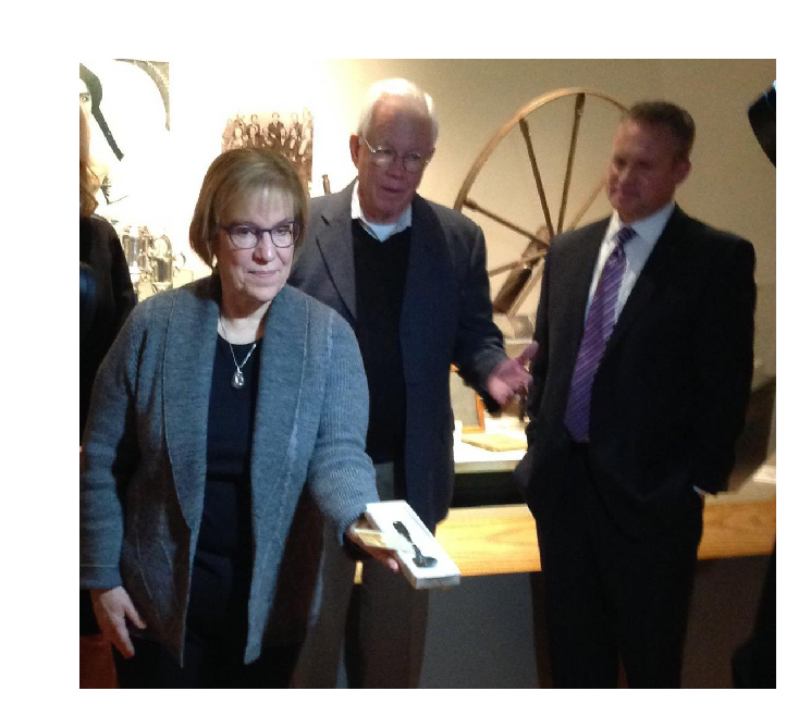 Allin and Donna Phister and their son, Thorton, all of Leawood, presented the spoon Tuesday to the Kansas Museum of History.